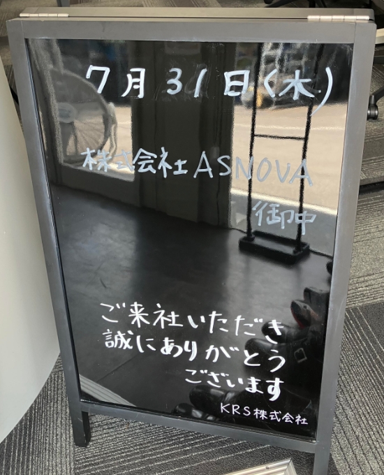 余談ですが、訪問した時に「お出迎え看板」をご用意していただきました。これは以前、清野様が訪問した先で受けた”おもてなし”に感銘を受け、自社でも取り入れたものだそうです。社内に”おもてなし”の精神が行き届いており、とても雰囲気の良い会社であることを感じました。
